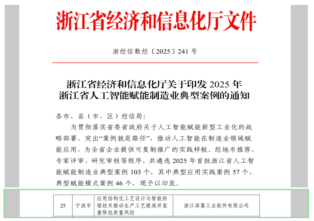 喜报!浙江添翼工业软件有限公司入选浙江省人工智能赋能制造业典型案例28